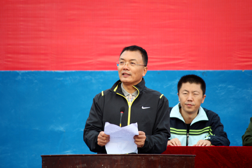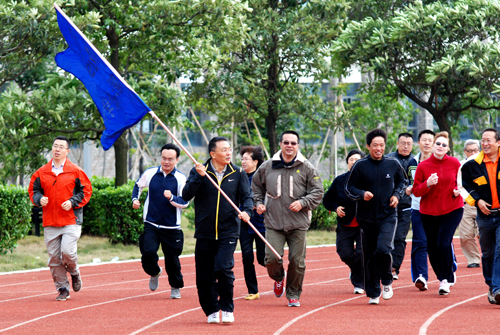 校运会在杨利院长带领院领导及各系部负责人绕运动场一周的跑步中正式开始。