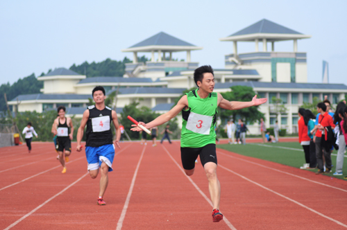 下午的天空一扫晨早的阴霾,暖暖的阳光为令赛场更加沸腾,热情如火的拉拉队分布跑道左右。女子4×100米接力赛看得观众情绪激昂,原本居后的数二中队在最后时刻,反转形势,连连超越对手,以1分04秒夺得冠军,日语系中队以1分10秒获排名第二,紧随其后的信六中队成绩为1分12秒。