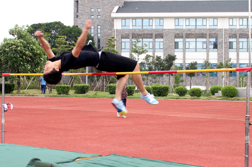 跳远男子组,虽然部分选手在开始时出现一些失误——踩线、落地时双手撑地,但当选手渐渐熟悉了赛道,赛事也越来越精彩,越来越快的脚步、越来越远的距离、越来越痛快的超越。制造5.63米的成绩的蔡金钟同学夺冠,上一届校运会蔡金钟同学也有参加,在同样的场地,他超越了自己,他说:“没有最好,只有更好”。黄敏俊同学以5.40米的成绩位居第二,上一年他是该项目的冠军,虽然未能卫冕,但他并不感觉遗憾。第三名由黄冬同学跳出5.30米的成绩后获得。