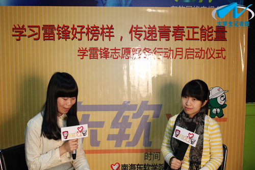 本网讯(大学生记者团 林蕤馨)“传承雷锋精神,以微志愿形式,从身边微小的志愿服务做起。”3月5日下午,由院团委主办,青年志愿者服务队(下称青志队)承办的“学习雷锋好榜样 传递青春正能量”志愿服务行动月行动,在东软网络电视台直播间以“微访谈”的形式正式启动副院长张瀚涛、团委书记伍嘉华等接受了青志队队员们的访问。
