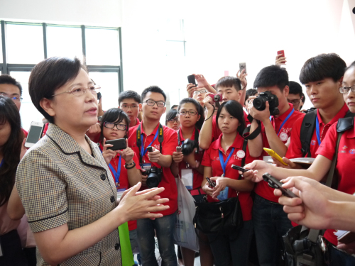 教育部长鲁昕接受学生记者的采访。(陈亨彦 摄)