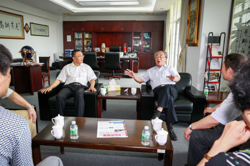 本网讯(记者 罗修坤)5月29日上午,原安徽省教育厅厅长,全国高校设置专家评审委员会成员,专家组组长陈贤忠莅临我院,与院长杨利,党委书记左斌,副院长刘春雨,党委副书记陆柳华亲切会面。
