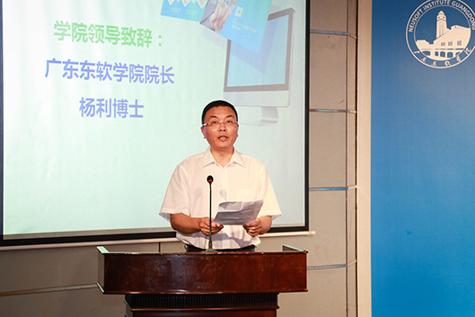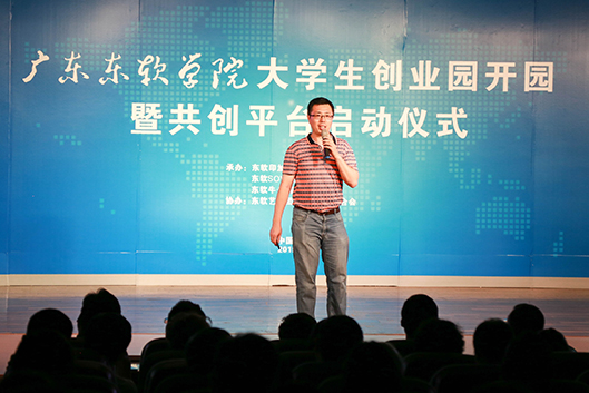 杨利院长首先致辞,他说:“东软学院搞创业绝不是赶时髦,也不是心血来潮,更不是为了减轻就业压力被动选择,而是为了培养大学生创新意识和创新精神的主动作为。大家知道,广东东软学院来自东大、始于东软。企业的基因、创业的基因深深根植于我们的教育理念当中。2002年创校伊始就建立了大学生虚拟创业园SOVO空间,培养大学生创业的技能,是全国最早开始强调创新创业教育的学校之一。因为东软集团就是从大学走出来的优秀企业,我们比别人更懂创新创业的意义。今天东软提出建设大学生共创平台,构建面向大学生的创业云平台,开展O2O创业培训,整合第三方的创业工具,搭建从创业到就业的校企互动平台,推动高校创业联盟及大学生创业联盟的快速发展。”