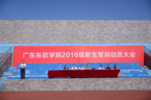 本网讯(记者 李惠旋)9月18日上午,广东东软学院2016级新生军训动员大会在体育场隆重召开。学院副院长陈万里、广东省军区教导大队上校欧洪江、教务部长程江涛等出席了大会,学院各系部书记、学工负责人、全体承训教官及参训师生参加大会。大会由学工部部长石明罡主持。