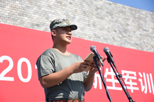 信管系工商管理专业本科一班的吴俊杰同学代表2016级新生发言,他代表所有参训学生承诺,一切行动听指挥,服从管理,认真训练,向教官学习,认真对待每一次训练,时刻以一名军人的标准严格要求自己。