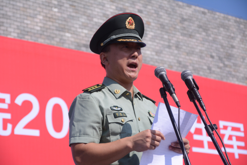 会上,欧洪江上校做动员讲话,他要求参训同学牢牢树立国防意识,为实现中华民族伟大复兴的中国梦而奋斗,刻苦训练,严格要求,争做博文精武的优秀大学生;严明纪律,科学管理,实现军训全程安全有序。同时,他向参训教官提出要求,发挥省军区教导大队军训团优良作风、光荣传统、以身作则,全情投入做好今年军训工作。