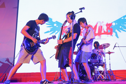 活动还未开始现场俨然已经成为灯的海洋,纳新的组织社团在各自的摊位上“张灯结彩”。晚会在Rock-Club吉他社的爵士架子鼓和电贝斯热情演奏下预热起来,三个篇章,循序渐进的为大一新生们呈现了大学生活的点滴。