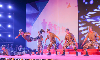 第二篇章《感恩•独立》。青年志愿者服务队带来的手语表演,手的每一次挥动都带着丝丝温暖,他们用自己的坚持和无私奉献帮助着他人,不辞劳苦,不求回报,是我们身边的楷模;计算机系学生会诙谐反串的情景剧《微微一笑学生会》,让台下观众不止“微微一笑”。艺术团合唱队则用一曲《I believe I can fly》彰显着东软艺术气息;当晚表演的最高潮出现在教官上台所表演的擒拿术、背档木板以及徒手劈砖,让台下的大一新生们为教官狠狠捏了一把汗。教官展现的纪律性、军人气概让人敬佩。总教官更是直言对东软的喜爱“爱上一座城市需要一年,爱上一个学校只需要12天,甚至一个军训”,新生们对此给予了他们最热烈的掌声。