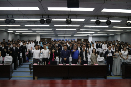 11月1日,思沃创新管理学院创新峰会暨院LOGO征集大赛启动仪式在BG06举行,该院院长蔡博文、党总支书记伍嘉华及该院全体教师、学生骨干、各院系学生代表参加了仪式。