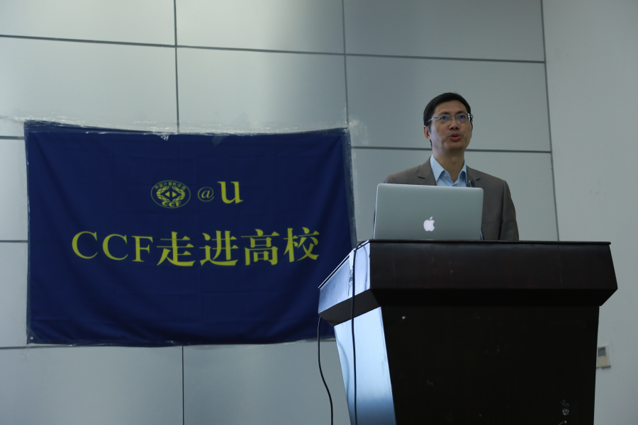中国计算机学会(CCF)成立于1962年,是中国计算机及相关领域的学术团体,宗旨是为本领域专业人士的学术发展和职业发展提供服务;推动学术进步和技术成果应用;进行学术评价,引领学术方向;对在学术和技术方面有突出成就的个人和单位给予认可和表彰。CCF走进高校(CCF@U)为中国计算机学会组织的系列演讲会公益活动,以其众多资深的活跃在科研、教育、管理、职业规划等各个领域的计算机学术专家和管理专家,为大学生们答疑解惑,帮助他们认识自己,为他们的职业规划起到指导作用。在我院举办的此场报告会为CCF@UD第548场活动。
