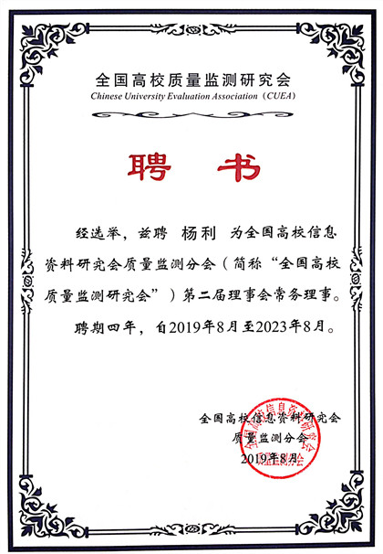 校长杨利博士获聘全国高校信息资料研究会常务理事