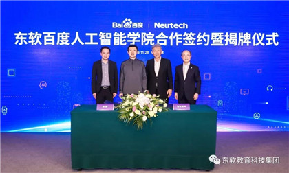 11月28日,百度与东软教育科技集团在北京正式签署战略合作协议,并为双方合作设立的“东软百度人工智能学院”揭牌。根据协议内容,双方将在大连东软信息学院、成都东软学院、广东东软学院三所应用型大学开设的人工智能、大数据相关专业基础上,积极探索行业企业深度参与高校协同育人的体制机制和人才培养模式,以现代产业学院的形式共建“东软百度人工智能学院”。